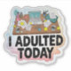 Celebre suas conquistas, não importa quão pequenas, com nosso adesivo "Eu Adultei Hoje"! Este adesivo lúgubre e humorístico é perfeito para aqueles dias em que você enfrenta suas responsabilidades e se sente orgulhoso de suas habilidades adulterantes. Quer você tenha completado suas tarefas diárias, votado, ou simplesmente tenha conseguido sair da cama a tempo, este adesivo é uma maneira divertida de recompensar a si mesmo e compartilhar suas vitórias adulterantes com outros. Feito de materiais de alta qualidade, é perfeito para decorar seu planejador, laptop, ou qualquer superfície que precise de um pouco de motivação e humor!