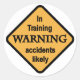 Para o bebê ou criança que está treinando, oferecemos um sinal amarelo e um design de texto que diz "Aviso..Em treinamento..Provavelmente, acidentes"!
