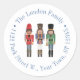 Este design flexível de autocolante apresenta 3 Soldados Nutcracker Afro-Americanos em uniformes vermelhos verdes e azuis com borda circular de texto. Mostrado aqui para uma etiqueta de endereço de retorno, mas todos os campos de texto são flexíveis para suas necessidades. Por exemplo, pode ser um obrigado que você favorece o adesivo.