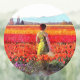 What better way to welcome spring than to spend an afternoon strolling through tulip fields with vibrant shades of pink, orange, yellow, and purple? This artwork shows a woman who has just taken off her hat, admiring the melange of tulip colors in the April sun.