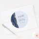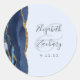 This elegant modern wedding sticker features a navy blue watercolor agate geode design trimmed with faux gold glitter. Easily customize the charcoal gray text on a pale blue background, with the names of the bride and groom in handwriting calligraphy over a large ampersand.