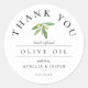 Oliveiras e folhas em aquarela, azeite moderno, adesivo de agradecimento.