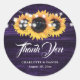 Adesivos de agradecimento/favor/envelope de casamento rústico de girassol e roxo ideais para um casamento rústico country, quintal, jardim ou celeiro inspirado nas flores de girassol.