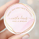 Adesivo Redondo Clássico Agradecimento Empresarial Círculo Dourado Rosa Corado. Adesivos empresariais profissionais elegantes com estilo de caligrafia manuscrita em círculo dourado aquarela rosa corado. Perfeito para artistas de maquiagem, cabeleireiros, cosmetólogos e muito mais!