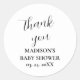 Adesivo Redondo Clássico de Agradecimento Personalizado de Chuvinha de Bebê Branco
