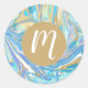 Um elegante e moderno design de ouro brilhante falso, azul e tons de aqua todos se misturaram em um efeito líquido de mármore/derramamento de tinta. Este trabalho de arte foi feito para dar a sensação de geodes & marble, ou uma tinta líquida derramando arte. Personalize este design, adicionando seu próprio crachá inicial e personalizando o círculo do monograma.