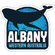 Um design ousado e atraente celebrando Albany, na Região Sul Excelente da Austrália Ocidental. Esta trabalho de arte apresenta uma silhueta impressionante de uma baleia.