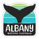 Um design ousado e atraente celebrando Albany, na Região Sul Excelente da Austrália Ocidental. Esta trabalho de arte apresenta uma silhueta impressionante de uma cauda de baleia contra o fundo vívido do oceano turquesa.