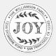 Adesivo de endereço de devolução redondo para família no Natal com seu nome e endereço em tipografia preta elegante apresenta o texto ALEGRIA em tipografia manuscrita com um toque elegante de folhagem rústica. Basta adicionar seu nome e endereço. Exclusivamente projetado para você pelo Happy Dolphin Studio. Se precisar de ajuda ou produtos correspondentes, entre em contato conosco através do nosso chat da loja. Boas festas e Feliz Natal!
