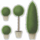 Este é um conjunto de 4 topiários bonito de madeira boxwood com dois topiários de bola, um padrão de bola e um arbusto cônico. Cada plantador tem espaço para um monograma de letras para indicar um nome para a nossa palavra.