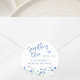 Isto é algo azul antes que eu faça chá de panela adesivo é decorado com flores silvestres azuis de cor d'água e tipografia de na moda. Facilmente personalizável. Original Watercolor © Michele Davies.
