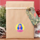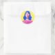 Um adesivo clássico amarelo-chic redondo com uma mulher clássica, cabelo azul e óculos, e nome personalizável. Para cartas de música, presentes, para escola e escritório.