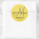 Vinhetas iniciais com noiva e nome noivo, data de casamento e obrigado mensagem para expressar sua gratidão no dia do seu casamento ou em qualquer ocasião especial. Este adesivo de casamento monograma está em cor amarela. Mais cores estão disponíveis para sua escolha. Você também pode personalizar a cor e a fonte usando o botão personalizar o recurso abaixo do produto
