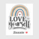 Elevem sua rotina de autoatendimento e abraçam o poder do amor próprio com este belo adesivo "Ame-se" com cérebro e coração do Design de Sapos Sexy. Projetado para inspirar e motivar, este adesivo é um lembrete diário para priorizar seu bem-estar e nutrir seu eu interior. Coloque-o no seu laptop, garrafa de água ou moente para infundir o seu ambiente com positividade. Com cores vibrantes e material durável, esse adesivo é na moda e duradouro. Que sirva como uma pista visual para praticar o autocuidado, praticar o autoamor, e criar uma vida cheia de felicidade e realização