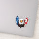 Este adesivo vibrante apresenta uma águia majestosa com suas asas estendidas, exibindo orgulhosamente as estrelas e faixas icônicas da bandeira americana. A presença poderosa da águia é complementada pelas cores vermelho, branco e azul, que simbolizam a liberdade e o patriotismo. Perfeito para mostrar seu orgulho americano, este adesivo é ideal para decorar laptop, garrafas d'água, carros ou qualquer espaço pessoal que pudesse usar um toque de Americana espirituosa.