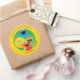 Este adesivo redondo temático da Sesame Street apresenta Elmo, Big Bird e Cookie Monster cercados por acentos coloridos, tornando-o perfeito para festas de aniversário e celebrações. Ideal para selar envelopes, decorar lembrancinhas ou adicionar um toque divertido às sacolas de presentes, este design vibrante traz diversão e charme a qualquer evento temático da Sesame Street.