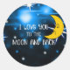 Amo-te à Lua e Volta, céu estrelado, adesivo redondo.