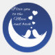 Eu te amo na lua e de volta. Este bonito ditado celestial de amor e romance é perfeito para o casal romântico celebrando um aniversário ou dia de os namorados. Céu azul estrelado com lua branca e duas silhuetas de pássaros com corações. Todos os Designs Copyright © 2013 www.CuteComfy.com