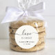 Um adesivo de creme leve para os favores do seu casamento com "o amor é doce" em letras simples e um roteiro elegante com sucos, seus primeiros nomes unidos por um coração e sua data de casamento.