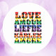 Ajude a espalhar a mensagem do amor com este adesivo divertido! Diz o amor em línguas como o francês, o holandês e o italiano feito com corações coloridos!