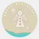 Este belo adesivo de Natal apresenta um adorável anjo estilizado cercado por flocos de neve sobre um fundo de turquesa e bege. Adicione seu próprio cartões de natal favorito ou outro texto usando o modelo.