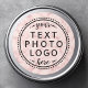 Etiquetas redondas com um fundo de mármore rosa e campo de modelo para o seu logotipo personalizado, fotografia, código QR ou outro gráfico. Adicione texto, mova e redimensione elementos com a ferramenta design. Siga-nos no Facebook: @business stationery para mais produtos, notícias, vendas e muito mais.