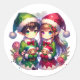 Filhos de anime em Papai Noel segurando brinquedos com rótulos de Natal com um olhar de aquarela.