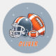 Cartoon de Capacetes de Futebol com os Stickers de Aniversário. Vestidos e modernos adesivos de aniversário de futebol com um nome personalizado. Apresentando uma ilustração ousada de um futebol e capacete em laranja e cinza. Adicione seu nome.