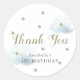 Este obrigado de aniversário fofo que você cola apresenta estrelas de brilho dourado e nuvens azuis lisas em um fundo branco. Personalize-o para as suas necessidades.
