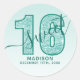 Adesivo Redondo Clássico de Aniversário de 16 Anos Sweet 16 Script Glitter Aqua Teal. Este design moderno é acentuado com glitter contra um fundo ombre. Personalize este design personalizado com seus próprios detalhes.