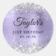 Crie seus próprios adesivos favoritos do aniversário de 21 anos. Garota cintilante prateado cintilante nos bordos superior e inferior, sobre uma lavanda pálida fraca e folha fina púrpura de metal escovado, estilo ombre. Personalize os estilos de fonte para criar o seu próprio adesivo design para sua celebração especial. Uma caligrafia elegante clássica emparelhada com uma fonte serif de todos os bonés.