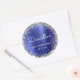 Estes adesivos de aniversário de 30 (ou qualquer ano) de chic apresentam um fundo azul de metal escovado com uma borda brilhante de prata. Personalize-os com o nome da convidada de honra em um guião branco de escrita manual, juntamente com o seu aniversário e data em sans serif.