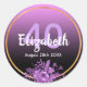Um adesivo glamouroso para um aniversário de 40 anos com elegante e moderno gradiente preto e rosa, roxo, pano de fundo ombre. Com uma falso estrutura dourada, e flores de cor aquosa ultra violeta e púrpura. Modelos para nome, idade e data, letras brancas e roxas coloridas.