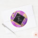 Celebrar o aniversário de casamento de 6 ametísta com estes adesivos de na moda! As letras esbeltas, a preto e branco, com um confete hexagonal de poeira dourada sobre um fundo ametista roxo, acrescentam um toque memorável para esta ocasião especial e marco. Personalize com os nomes dos casais e as datas do casamento. Excelente para uso em hóspedes/favoritos para festas, garrafas de vinho, papelaria, decorações de mesas, envelopes e muito mais. Design © W.H. Sim. Mais informações em zazzle.com/expressionsoccasions