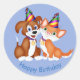 O adesivo de aniversário mostrado com um gato e um impressão de cachorro bonitinhos e brincalhões. Personalize este item e adicione um nome ou comprar como está.