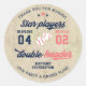 Adesivos de Aniversário de Gêmeos ou Irmãos com Dupla Rodada de Beisebol são configurados para um Menino e uma Menina. Este tema de beisebol vintage é um sucesso garantido para uma festa! Isso também pode ser usado para uma festa de aniversário conjunta de irmãos ou melhores amigos e se encaixa perfeitamente para mostrar as idades dos dois homenageados!