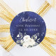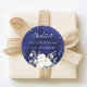 Um fundo azul marinho decorado com florais brancos, rosas. A cor azul é irregular. Personalize e adicione um nome e uma idade. Cartas brancas.