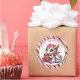 Um lindo dragão branco, dourado e rosa de chibi em um aniversário que temia adesivos personalizados da festa de aniversário da garota.