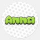 O nome Anna no texto verde do estilo bublegum retro cômico.