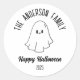 Adicione um toque festivo às suas comemorações de Halloween. O design apresenta a decoração do Dia das Bruxas de Fantasmas Bonitos. Isto é perfeito para abençoar seus amigos para festas de Halloween e sacos de presentes! O destaque? Um recurso personalizado de nome da família! Adicione seu nome de família ao design, como "A Família Smith", criando um recurso único e pensativo de feriado que é realmente seu.