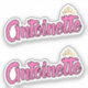 Nome próprio da antoinete x2 em caracteres decorativos cursivos em rosa quente e enquadrado em preto. Embelado com uma coroa ouro.