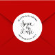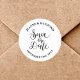 Apresentando nosso "Adesivo Clássico de Redonda de Anúncio de Casamento Personalizado". Estes adesivos elegantes adicionam um toque personalizado aos seus anúncios de casamento, apresentando um design eterno perfeito para qualquer tema. Ideal para selar envelopes ou aprimorar seus cartões salve a data, cada adesivo pode ser personalizado com seus nomes e data do casamento. A forma redonda clássica e os detalhes personalizados tornam seu anúncio exclusivo, garantindo um começo na moda e memorável para sua celebração de casamento.