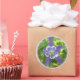 Um pano de aquilia caerulea (flor da columbina) de autocolantes redondos, com uma borda cor-de-rosa esmaecida como fundo. A foto foi tirada e editada por mim, mas eu a posto na loja PublicPhoto porque não é uma fotografia pessoal.