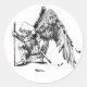Um lápis de grafite original desenhado por Sandra Gale de um anjo de arco ajoelhado após uma batalha apocalíptica e inclinado sobre a sua espada com a cabeça curvada. design de excelente para qualquer um que goste de anjos, arte de fantasia, religião ou apenas um belo desenho a lápis.