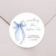 Adesivos chiques para seus convites de chá de noiva, lembrancinhas e cartões de agradecimento com uma aquarela elegante de um arco azul coquete, "algo azul antes de eu fazer" em uma fonte moderna, e o nome da noiva e a data do chá em letras simples.
