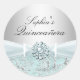 Quinceanera Sticker. Azul e prata espiral floral com arco e joias. Zazzle exclusivo. Personalize com seus próprios detalhes. POR FAVOR, OBSERVE todas as imagens planas! Eles não têm prata, arcos, Ouros ou Joias!
