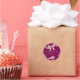 Adesivos elegantes de Natal com um fundo de vinho deslumbrante, fita e laço de aquarela rosa. Completo com o nome da sua família e as saudações de temporada "feliz natal".