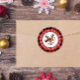 Bela vareta de Natal para as cartas de Natal e cartas de Natal com uma rena fofa com um nariz vermelho grande e um arco nas suas galhadas. Trim de verificação de búfalos vermelhos. North Pole Air Mail escrito em texto curvo com flocos de neve.