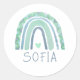 Ilustração do arco-íris de bico bonito com um coração bonito em tons verde-menta e azul com um nome personalizável.
