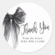 Elegantes adesivos de agradecimento mostrando arco de água-forte preto em estilo coquette. Perfeito para celebrações de chá de noiva temáticos 'Ela está dando o nó'.